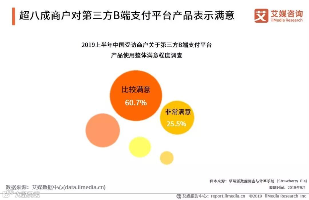 iiMedia Research(艾媒咨询)数据显示,商户对于第三方B端支付平台产品使用较为满意,86.2%的受访商户对产品表示满意,其中表示非常满意的商户占比高达25.5%。