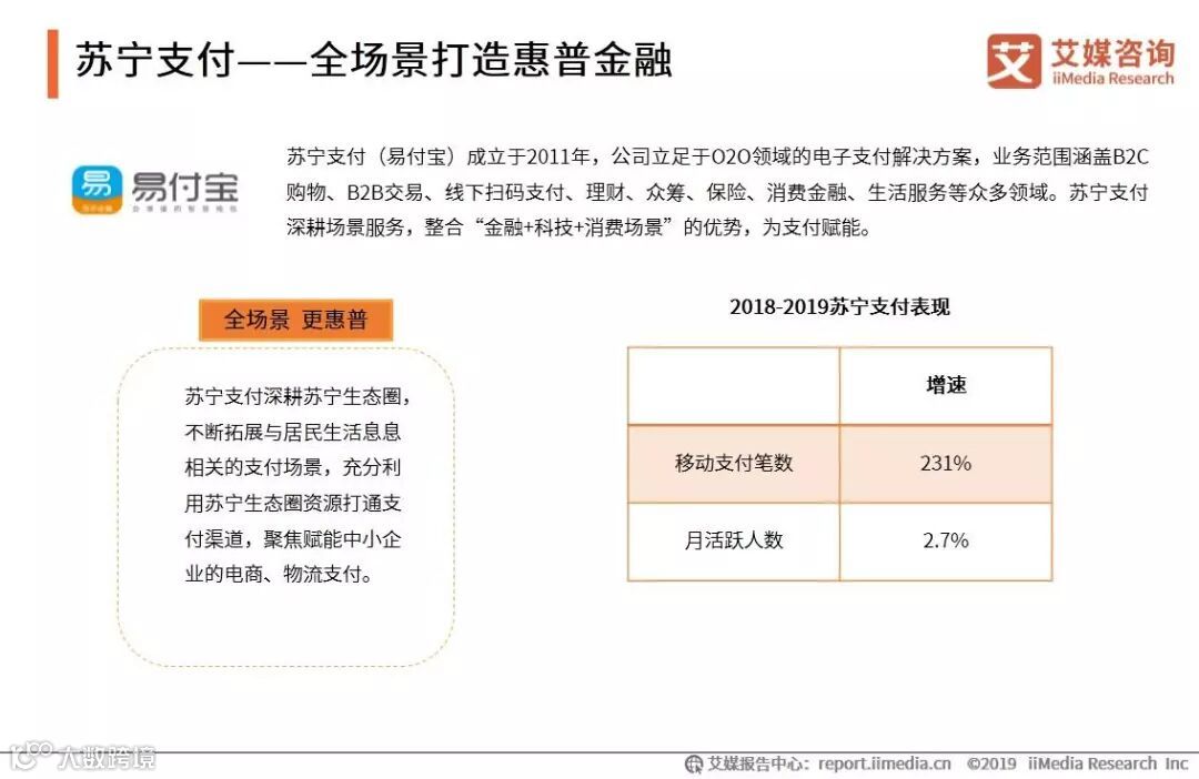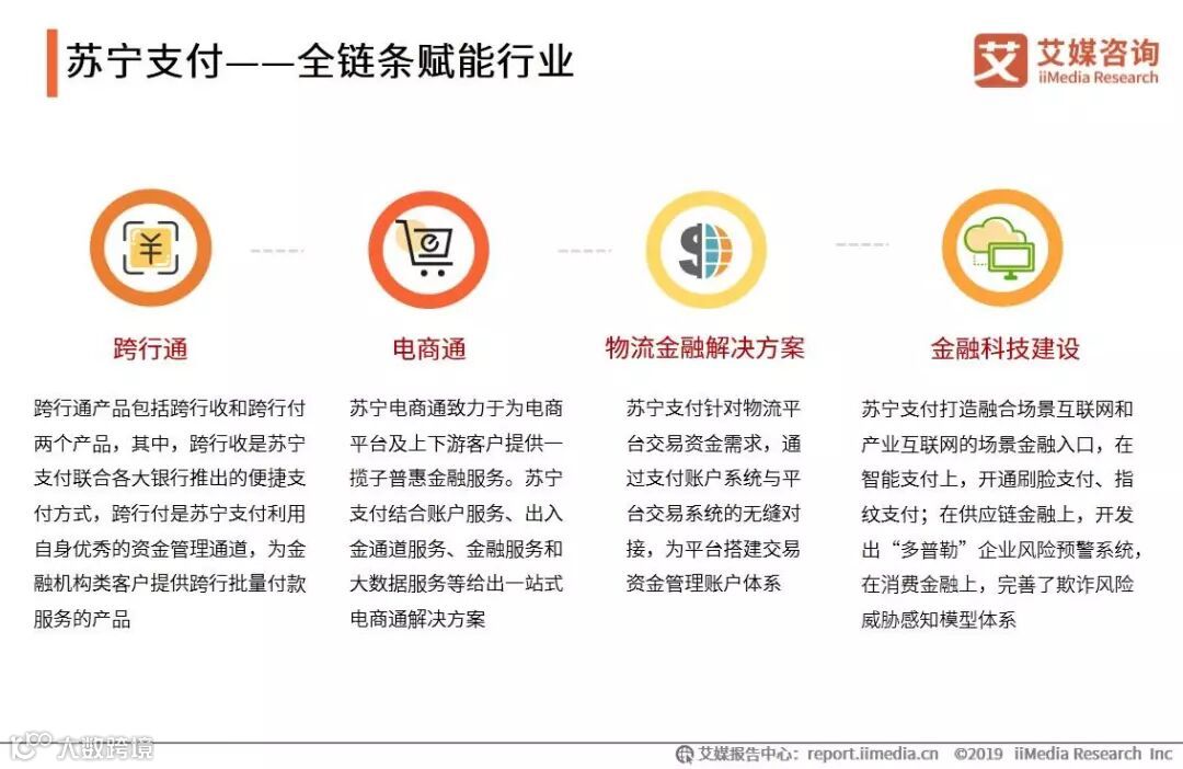 在B端,苏宁支付充分利用苏宁生态圈资源拓展上下游商户,聚焦电商、金融、物流等重点行业,打通客户的支付渠道、资金归集、风险控制等链条,为行业全链条提供了跨行通、电商通以及物流金融解决方案。未来苏宁支付应当着力于提升服务体验,创新金融服务,让金融科技覆盖更多金融场景,将普惠金融落到实处,为行业尤其是中小微企业赋能,助力实体经济发展,让金融服务渗透到更多的生态。