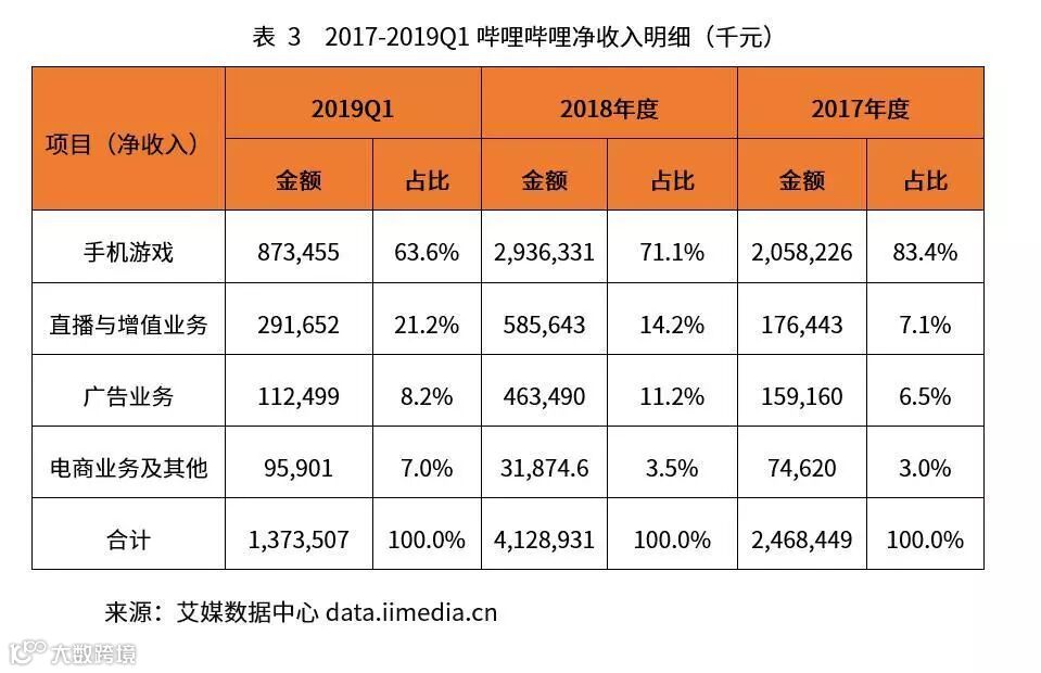 作为哔哩哔哩公司的上市主体, B站主要依靠游戏、直播及增值服务、广告、电商业务获取收入。哔哩哔哩2019Q1财报显示,B站月均活跃用户数达 1.01 亿人,同比增长 31%;付费用户增长至 570 万人,同比增涨132%;净收入为13.7亿元,同比增长58.24%。