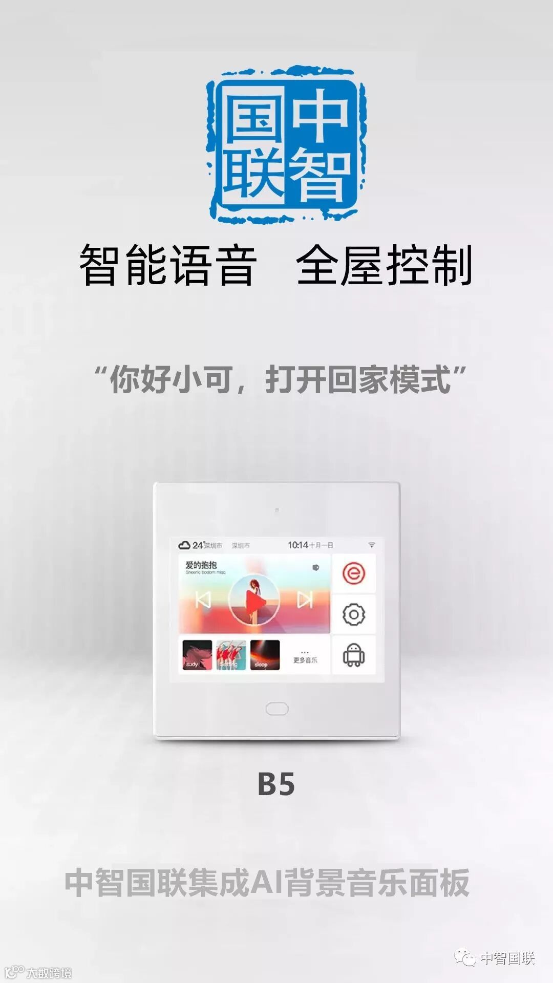 家里所有连接到中智国联系统的设备,都可以通过背景音乐面板进行全语音控制。
