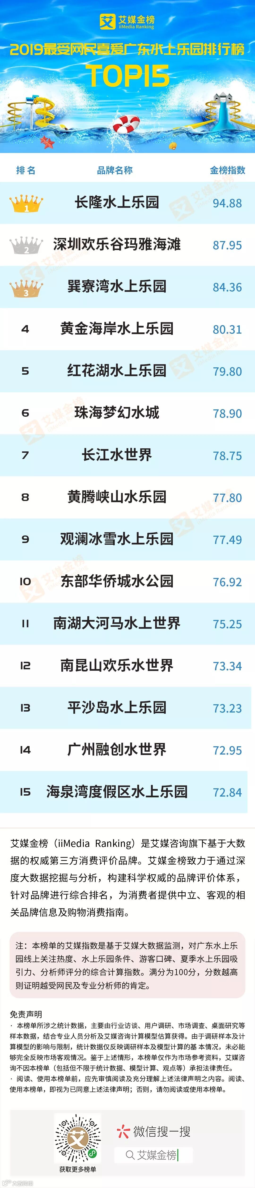 广东进入夏季以后持续着高温酷热天气,因此充满清凉气息的水上乐园成为了广东游客游玩出行的重要选择。面对各色各样的水上乐园,艾媒金榜(iiMedia Ranking)发布了《2019年最受网民喜爱广东水上乐园排行榜TOP15》榜单。