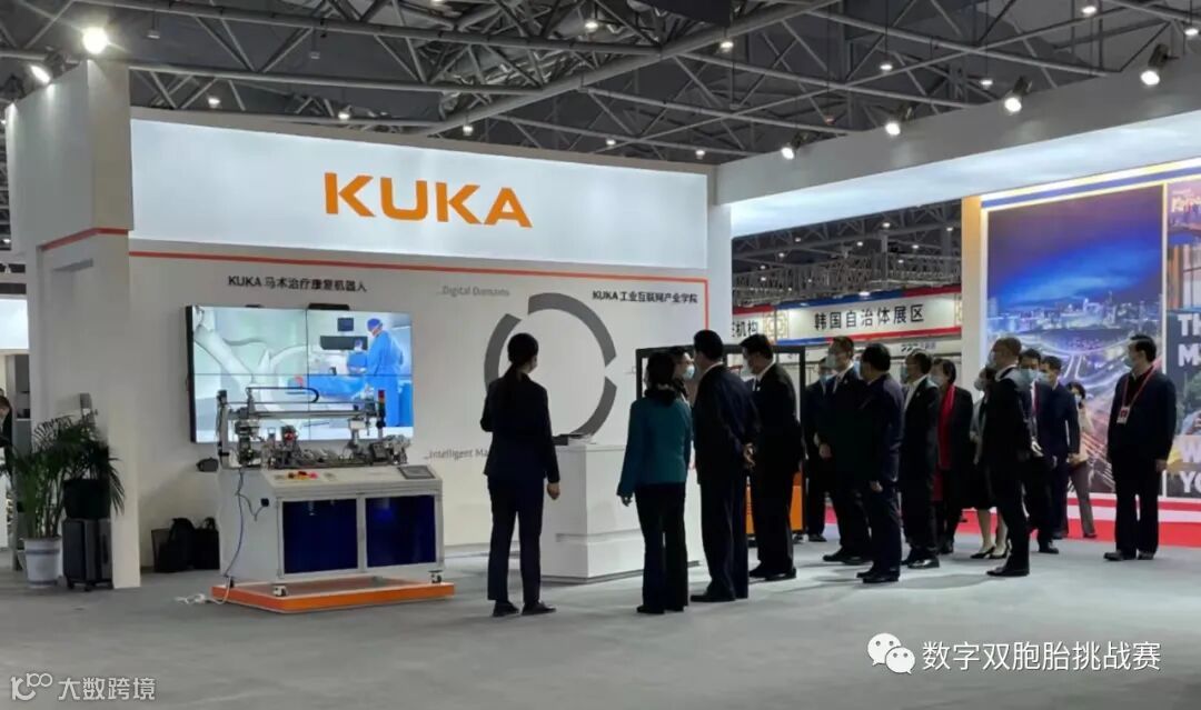本次大会上山东冠库联合KUKA共同在进口商品展区C位亮相,大会开幕第一天,安徽省委主要领导一行百余人莅临KUKA展位听取了KUKA安徽区域总监腾超和冠库智能负责人孙晶关于KUKA工业互联网产业学院校企合作项目和KUKA医疗康复机器人产品的汇报。KUKA展位的展品主要包括KUKA公司的马术治疗康复机器人,以及由冠库智能开发的工业互联网生产线实施与运维实训工作站、工业机器人智能维护实训工作站和工业互联网5G智能终端系统。大会第一天,莅临KUKA展位的人流不断,多家院校和企业对KUKA工业互联网产业学院校企合作项目表达了合作意向,期望共同培养工业互联网领域复合型高技能人才服务于地方产业智能化升级项目。