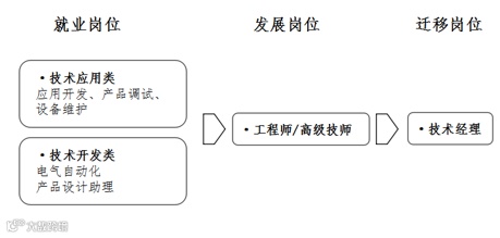 智能制造工程技术人员根据就业岗位的职责分为技术应用类和技术开发类,是贯穿智能制造企业从产品开发、应用调试到售后维护整个过程的重要角色。对个人而言,工程技术人员在经历岗位历练和技能水平提升后,可晋升工程师/高级技师。