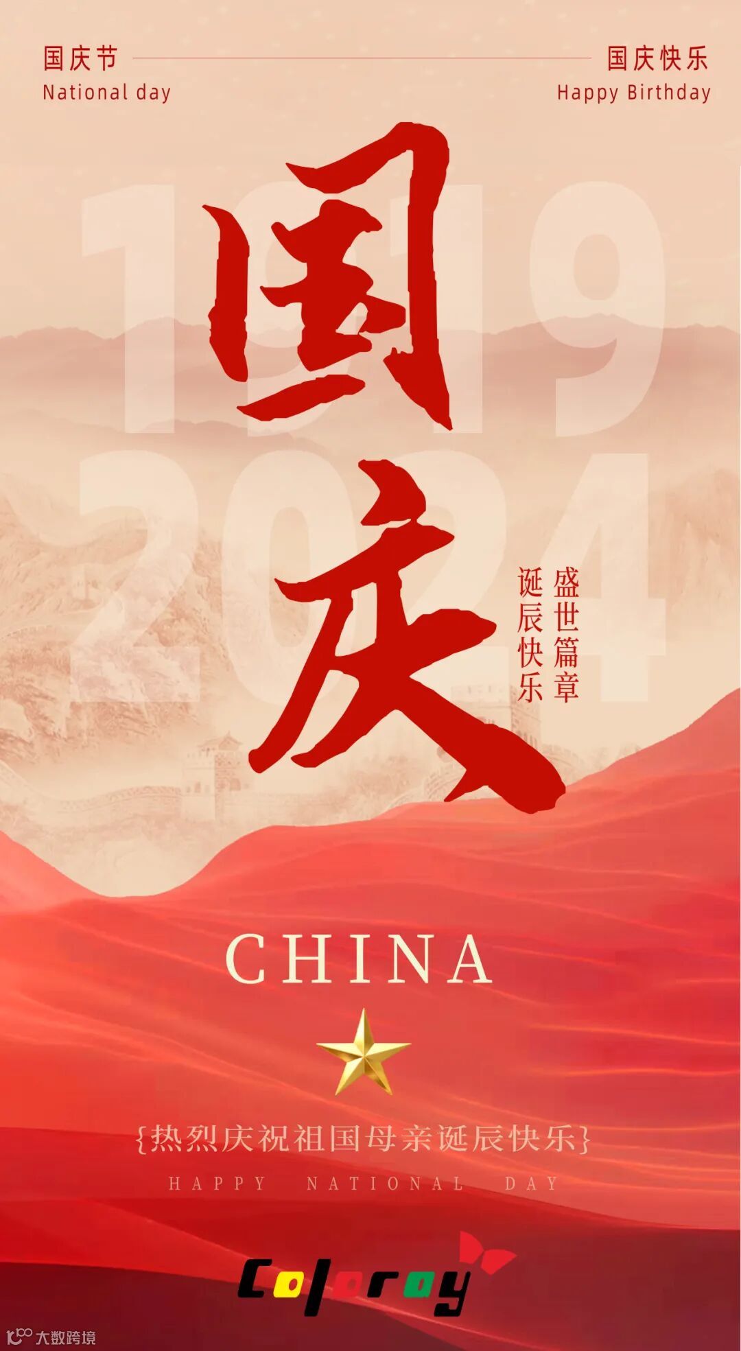 每一年的国庆,都是新的起点,新的希望。国庆佳节,凯色丽再次祝您和家人幸福安康!让我们携手并进,为实现中华民族伟大复兴的中国梦而努力奋斗!