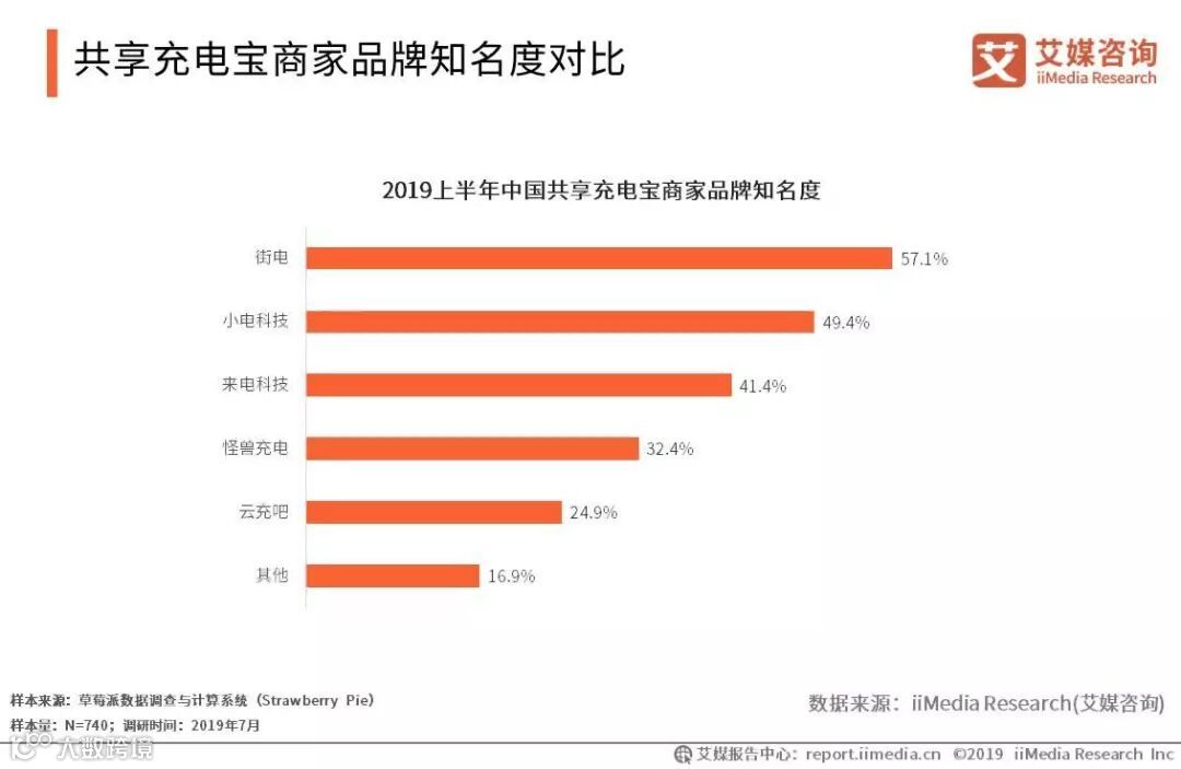 共享充电宝商家品牌知名度对比
