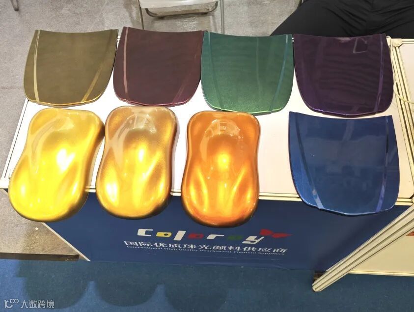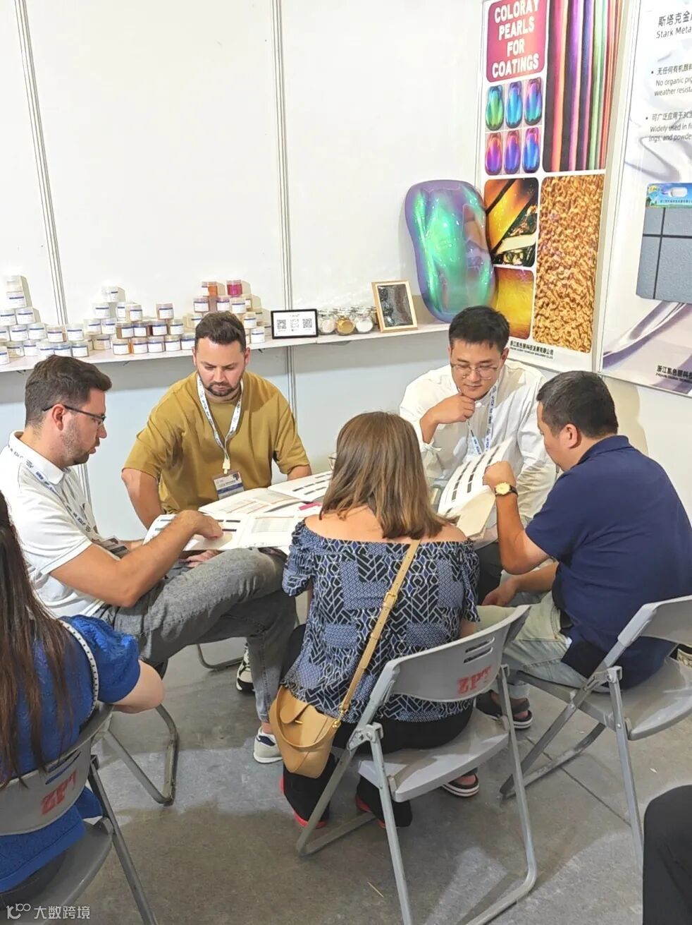 展位中陈列的汽车膜模型、墙板模型、家具模型和新产品珠光粉体吸引了众多新老客户,其中乌金系列凭借其24k金的效果深受参展客户喜爱。