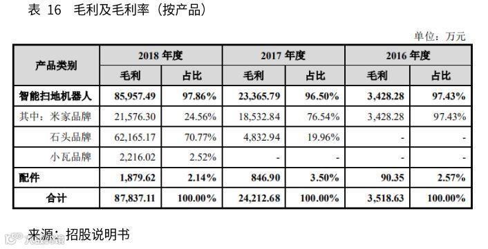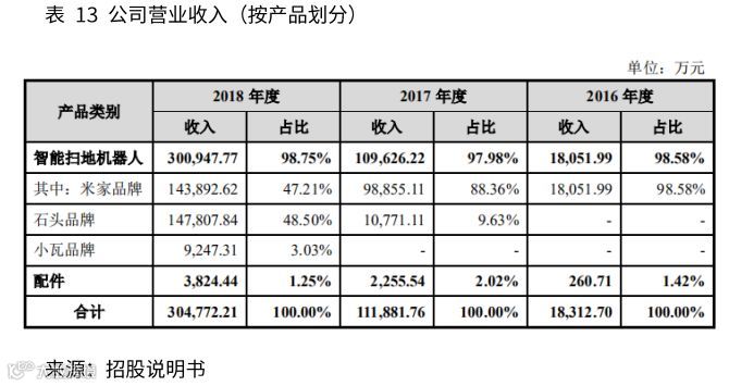 公司产品全部委托加工方式生产并采用以销定产模式。“米家”智能扫地机器人,2016~2018年销量分别为15.3万台、81.8万台、124.1万台,产销率分别为98.21%、99.34%、94.54%;“石头”智能扫地机器人,2017~2018年销量分别为5.6万台、79.2万台,产销率分别为83.10%、88.02%;“小瓦”智能扫地机器人,2018年销量9.6万台,产销率67.97%。