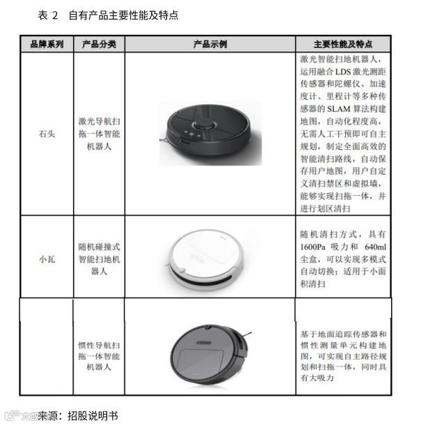 石头科技主业为智能清洁机器人等智能硬件的设计、研发、生产、销售,主要产品为小米定制品牌“米家”智能扫地机器人,及公司自有品牌“石头”、“小瓦”智能扫地机器人。