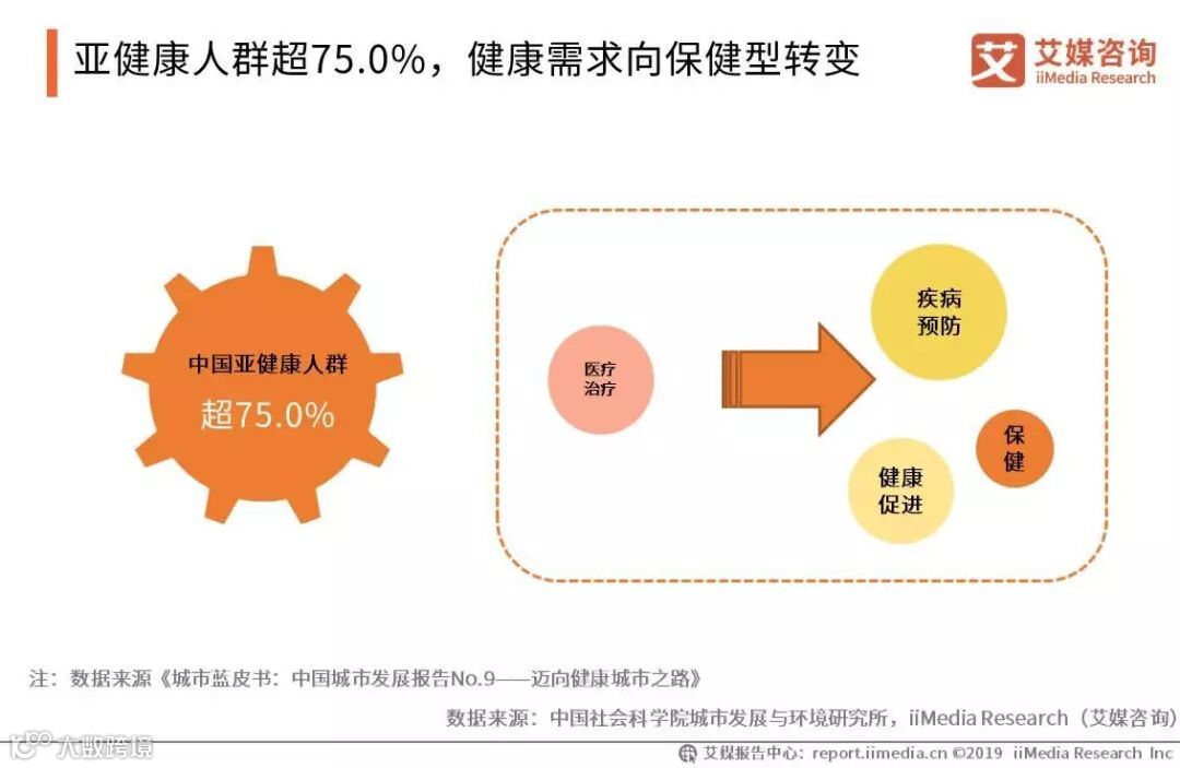 亚健康人群超75.0%,健康需求向保健型转变
