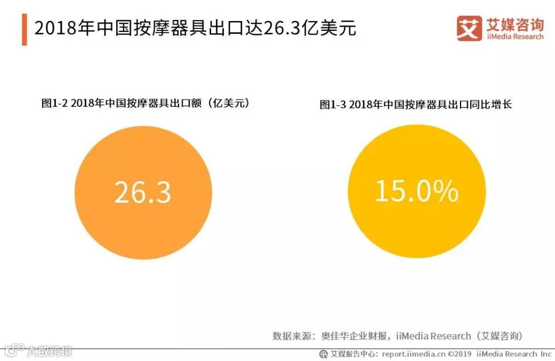2018年,中国按摩器具出口额达26.3亿美元,同比增加15.0%。