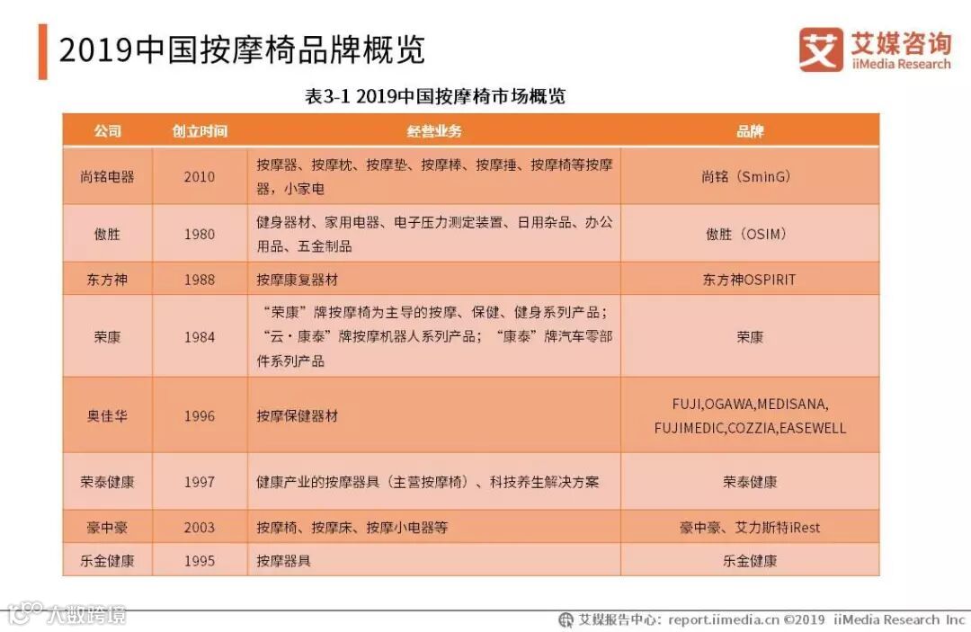 2019中国按摩椅品牌概览