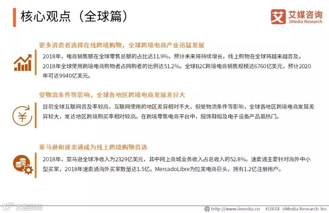 2018年全球B2C跨境电商交易额同比去年增长27.5%