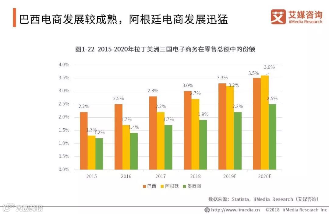 巴西电商发展较成熟,阿根廷电商发展迅猛