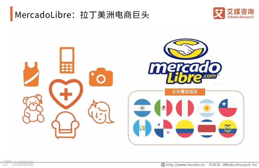 MercadoLibre成立于1999年,于2007年在纳斯达克上市。MercadoLibre销售品类涵盖电子、手机及配件、潮流服饰、家居生活、美容健康以及玩具等,目前其电商业务范围已覆盖巴西、阿根廷、墨西哥、智利、哥伦比亚等19个拉丁美洲国家,拥有1.21亿的注册用户。