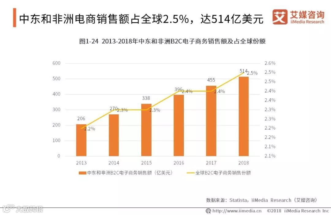 中东和非洲电商销售额占全球2.5%,达514亿美元