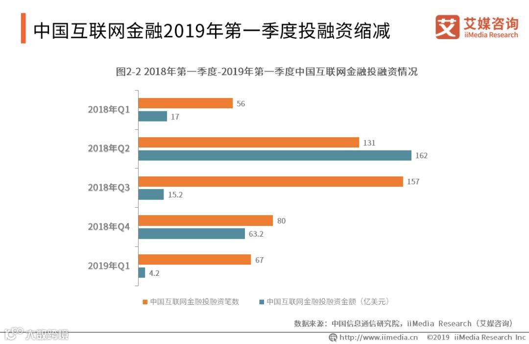 中国互联网金融2019年第一季度投融资缩减