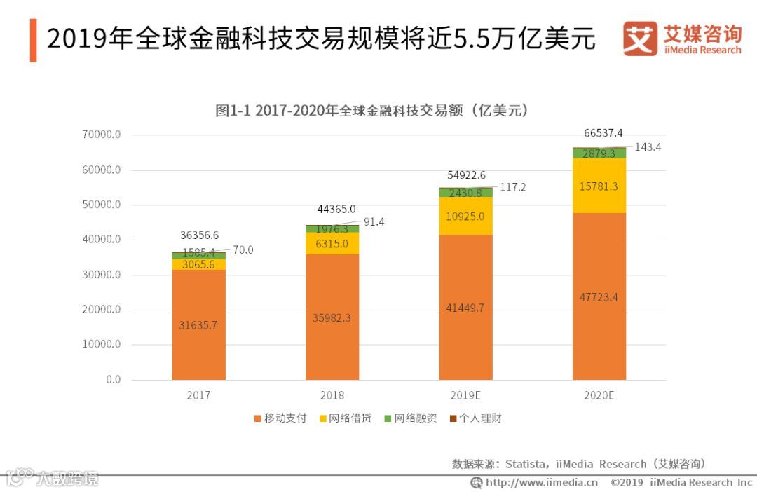 2019年全球金融科技交易规模将近5.5万亿美元