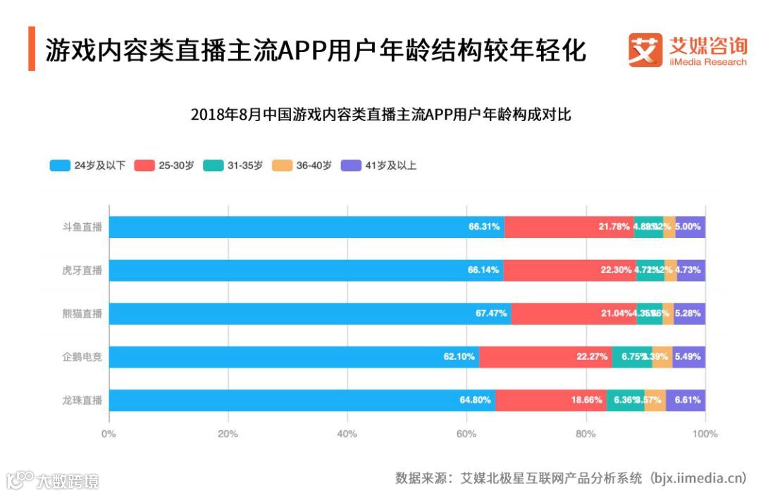 游戏内容类直播主流APP用户年龄结构较年轻化