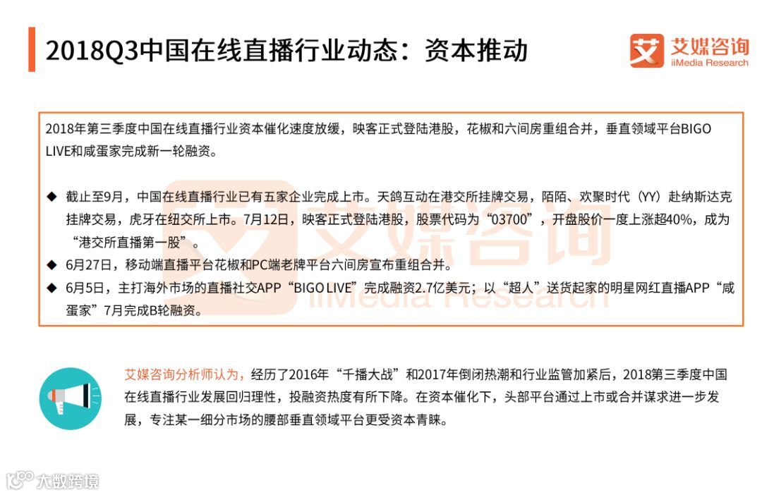 2018Q3中国在线直播行业动态:资本推动