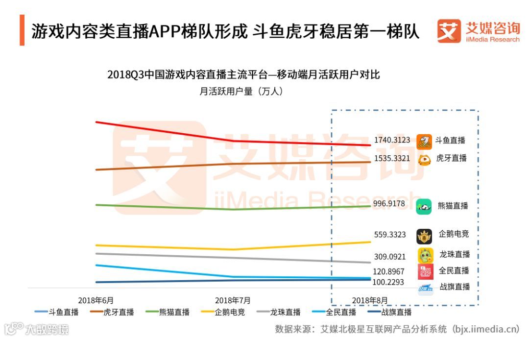游戏内容类直播APP梯队形成 斗鱼虎牙稳居第一梯队