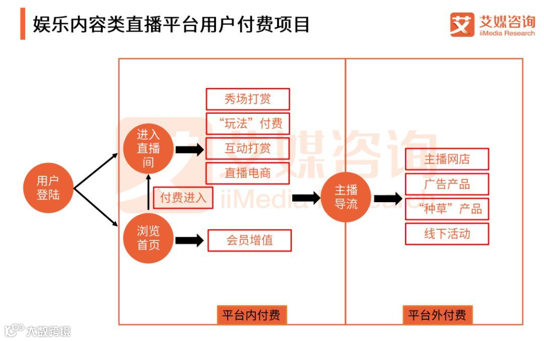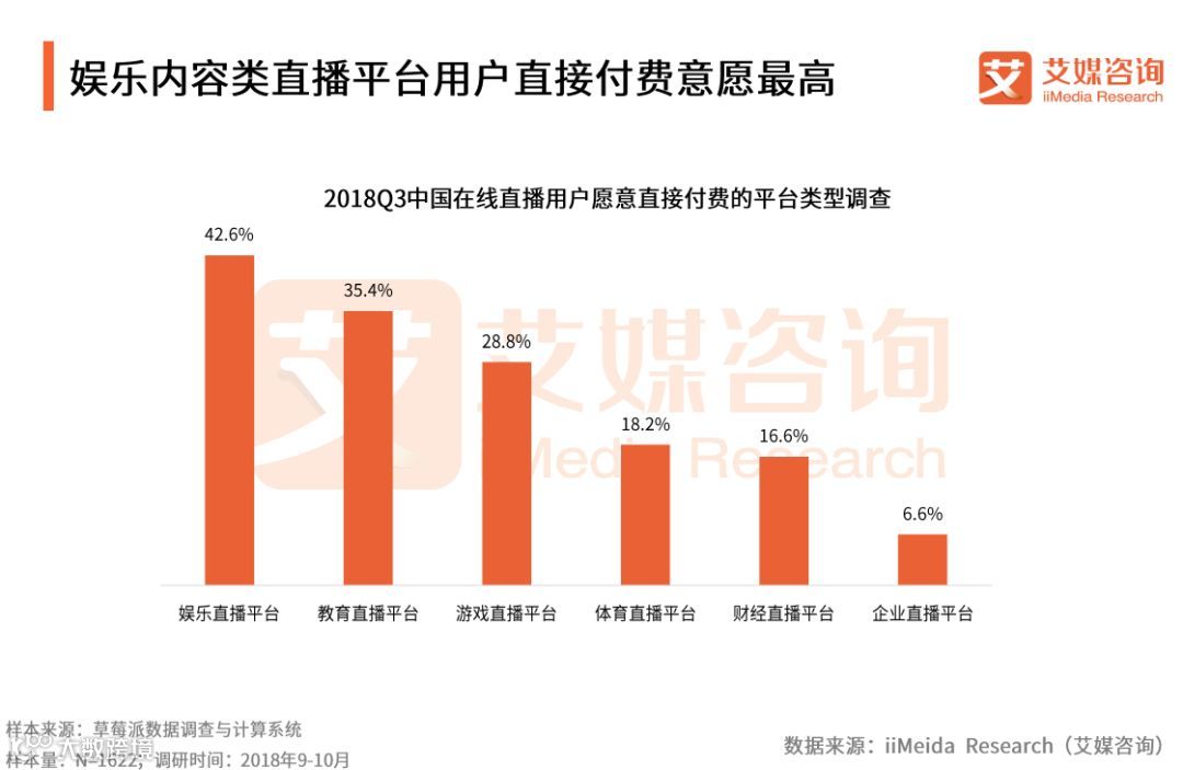 娱乐内容类直播平台用户直接付费意愿最高