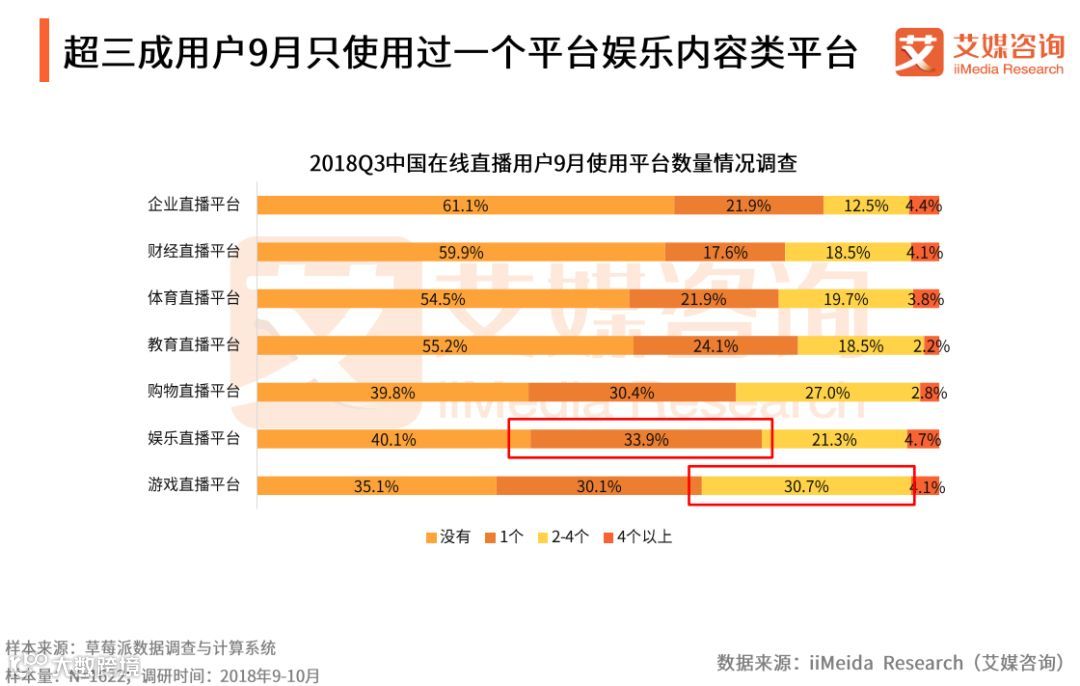 超三成用户9月只使用过一个平台娱乐内容类平台