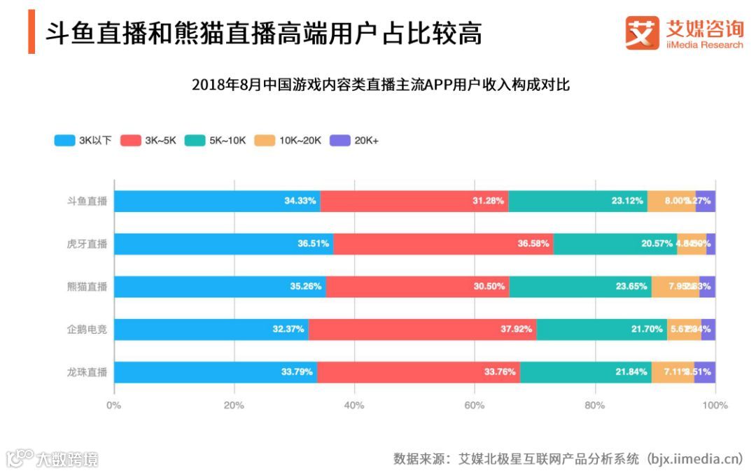 斗鱼直播和熊猫直播高端用户占比较高