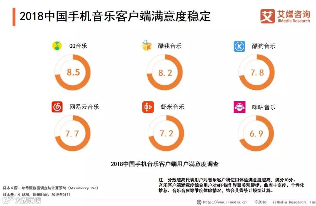 2018中国手机音乐客户端满意度稳定