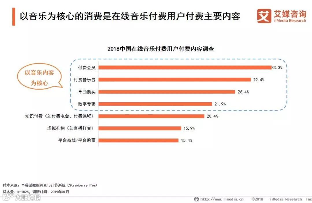 以音乐为核心的消费是在线音乐付费用户付费主要内容