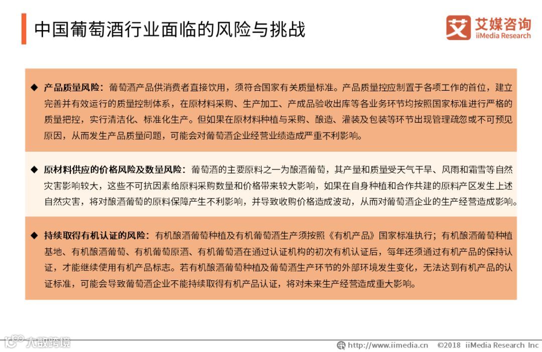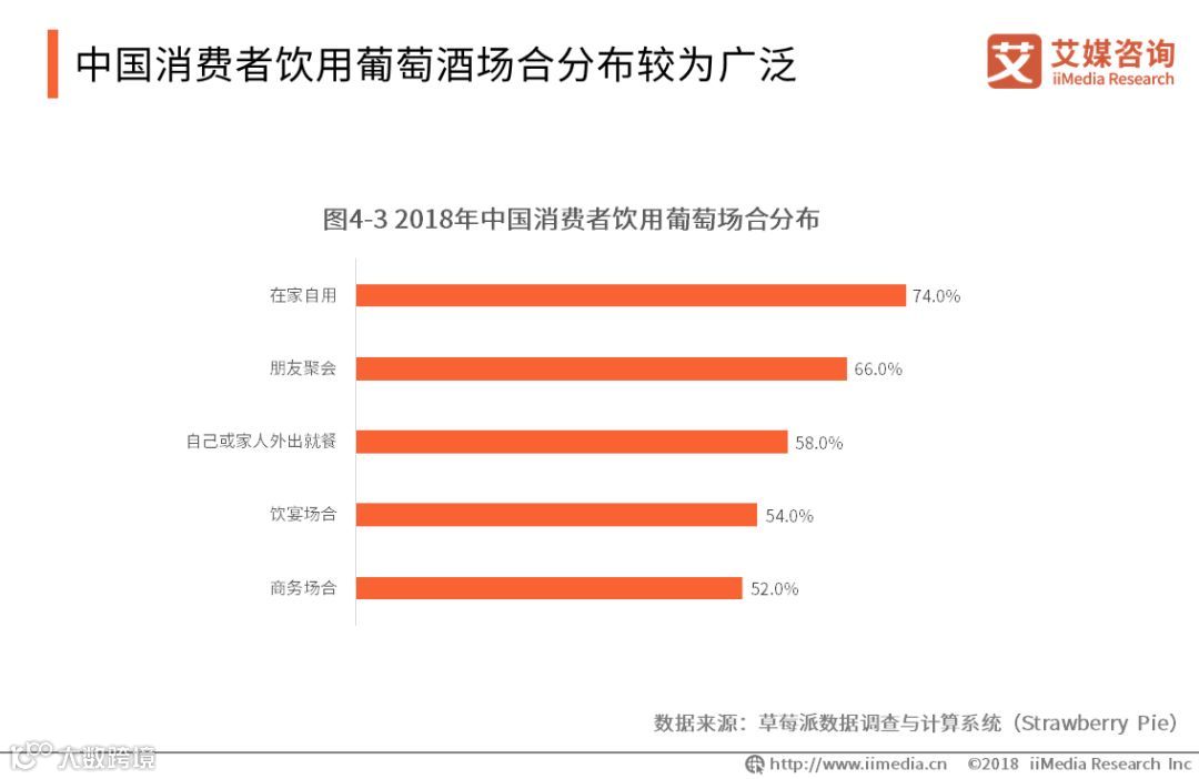 国家政策、消费者的健康需求和品质生活需求、进出口贸易的逐渐完善,都推动中国葡萄酒市场的不断壮大。iiMedia Research(艾媒咨询)数据显示,中国的葡萄酒市场规模预计将在2021年达到230亿美元。葡萄酒细分电商平台受到资本市场的关注。在不同品类葡萄酒的选择上,红葡萄酒以54.6%的比例成为消费者首选。77.0%的消费者出于健康需求饮用葡萄酒。葡萄酒饮用场景分布广泛,包括在家自用、朋友聚会、饮宴、商务等多种场合。(《2018-2019年中国葡萄酒产业研究与商业投资决策分析报告》完整高清PDF版共40页,可点击文章底部下载按钮进行报告下载。)
