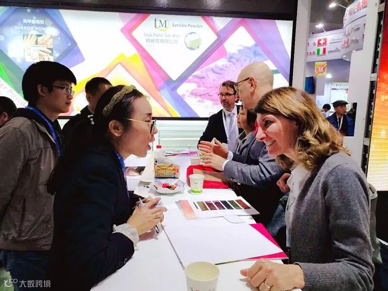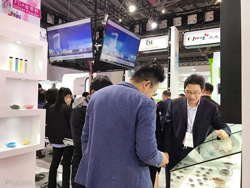 和国内的大型化妆品公司的专业人士前来展位洽谈合作。