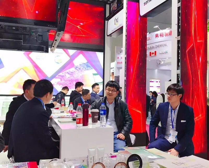 与悉数陈列的化妆品级珠光材料展品,