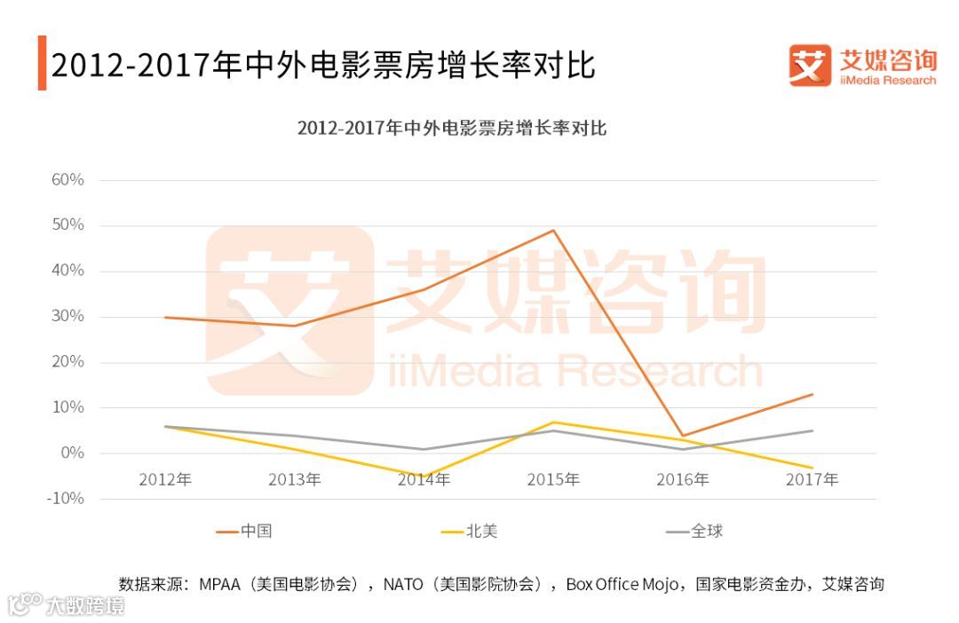 2012-2017年中外电影票房增长率对比