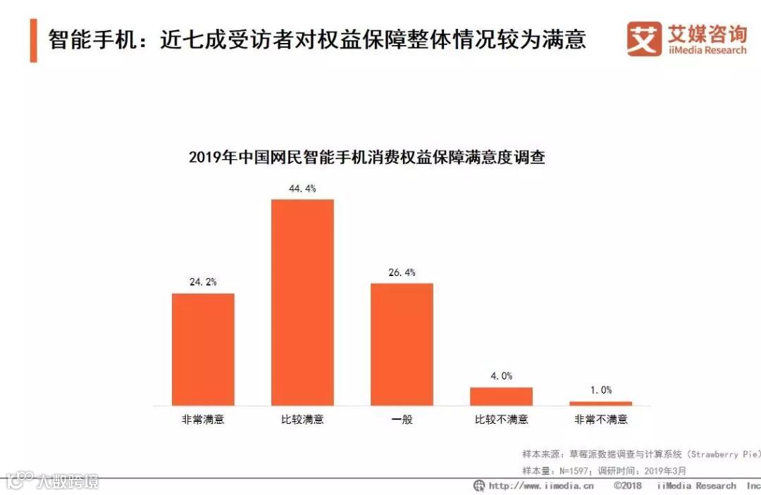 智能手机:近七成受访者对权益保障整体情况较为满意