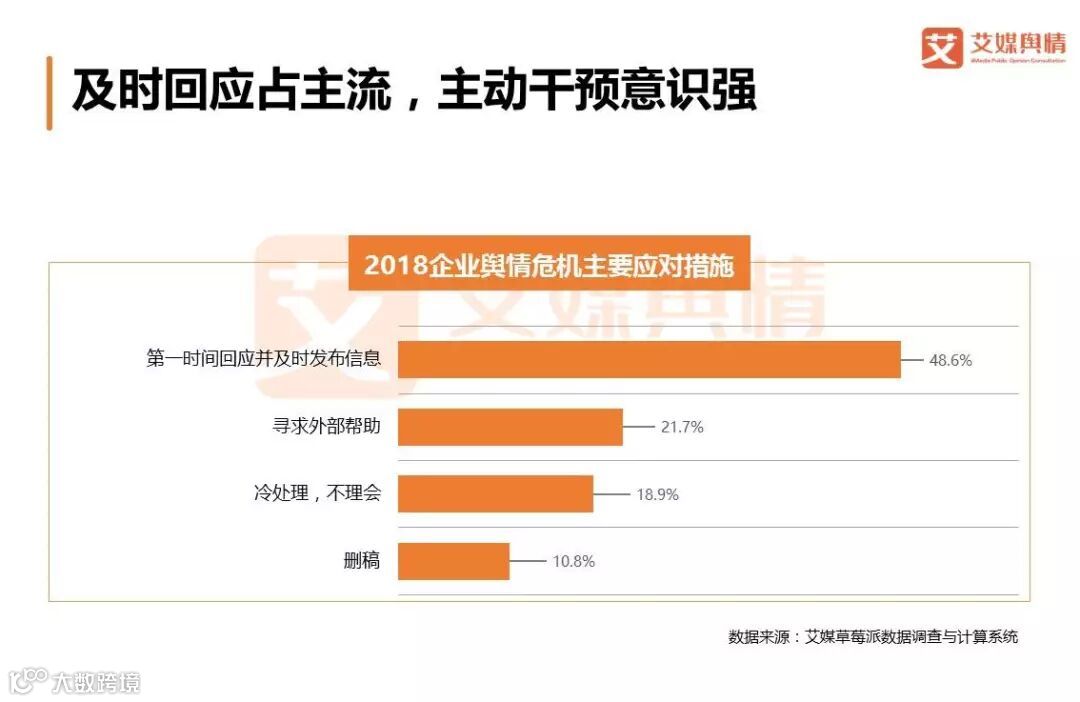 近五成企业表示在遭遇网络舆情危机时会在第一时间回应并及时发布信息澄清,主动干预意识较强。