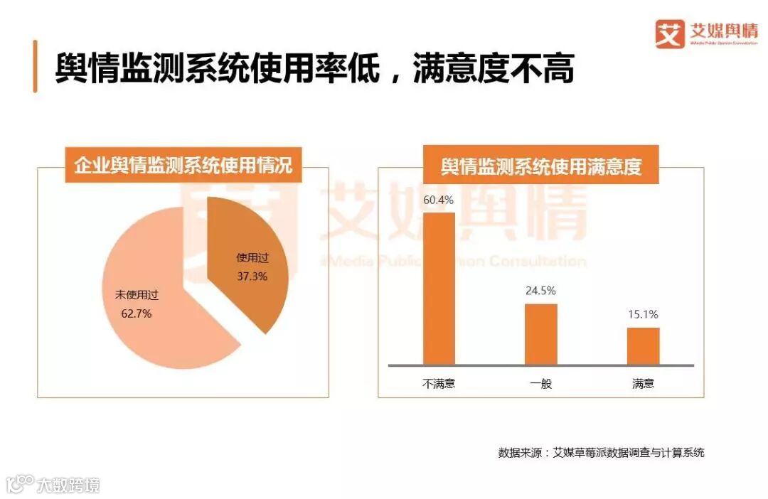 不到四成企业曾使用过舆情监测系统,六成多企业对舆情监测系统的使用情况表示不满意。