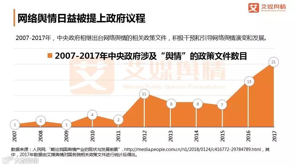 2007-2017年,中央政府相继出台网络舆情的相关政策文件,积极干预和引导网络舆情演变和发展。