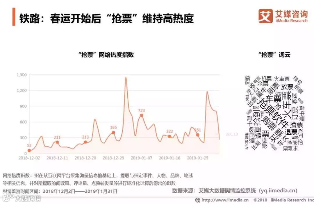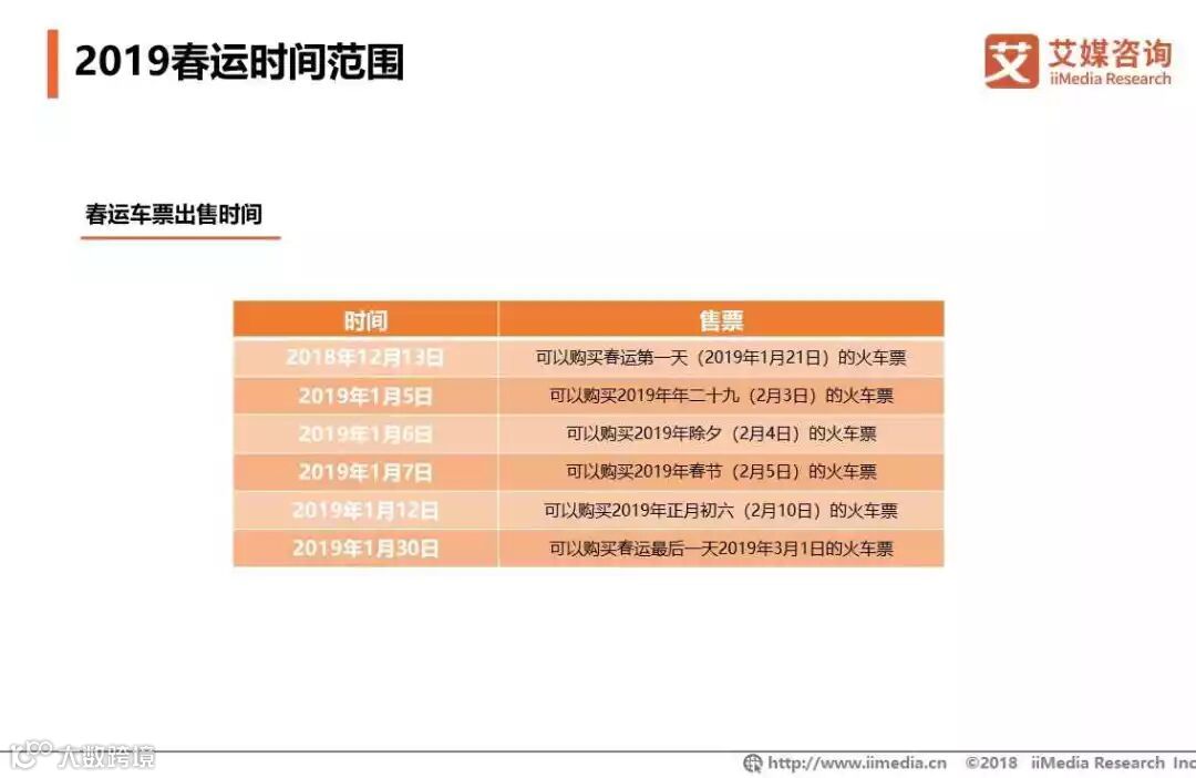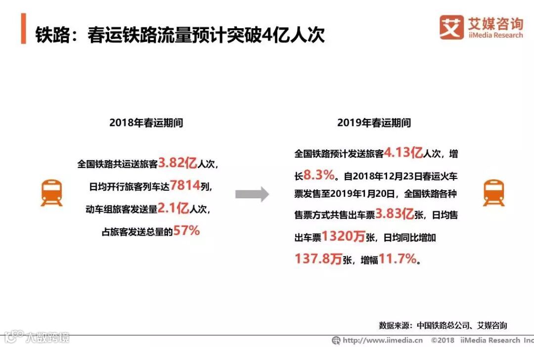 iiMedia Research(艾媒咨询)数据显示,2018年12月至2019年1月31日,中国火车订票类应用日均活跃用户数较平日有较大增长,环比增长率达到35.4%。