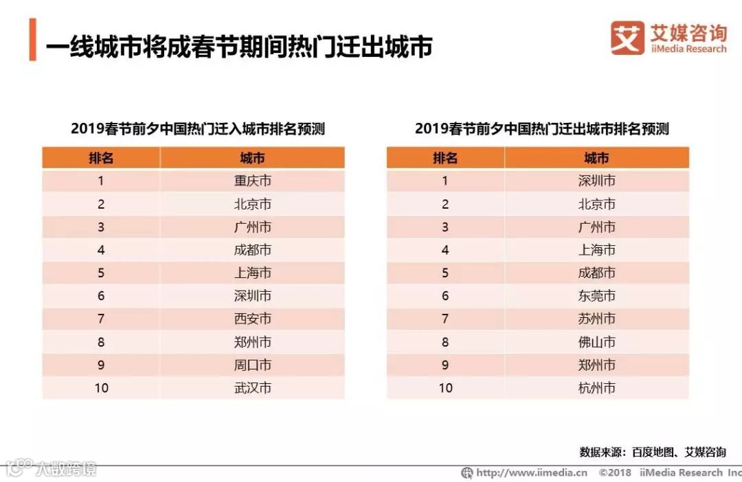 一线城市将成春节期间热门迁出城市