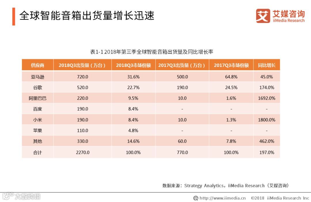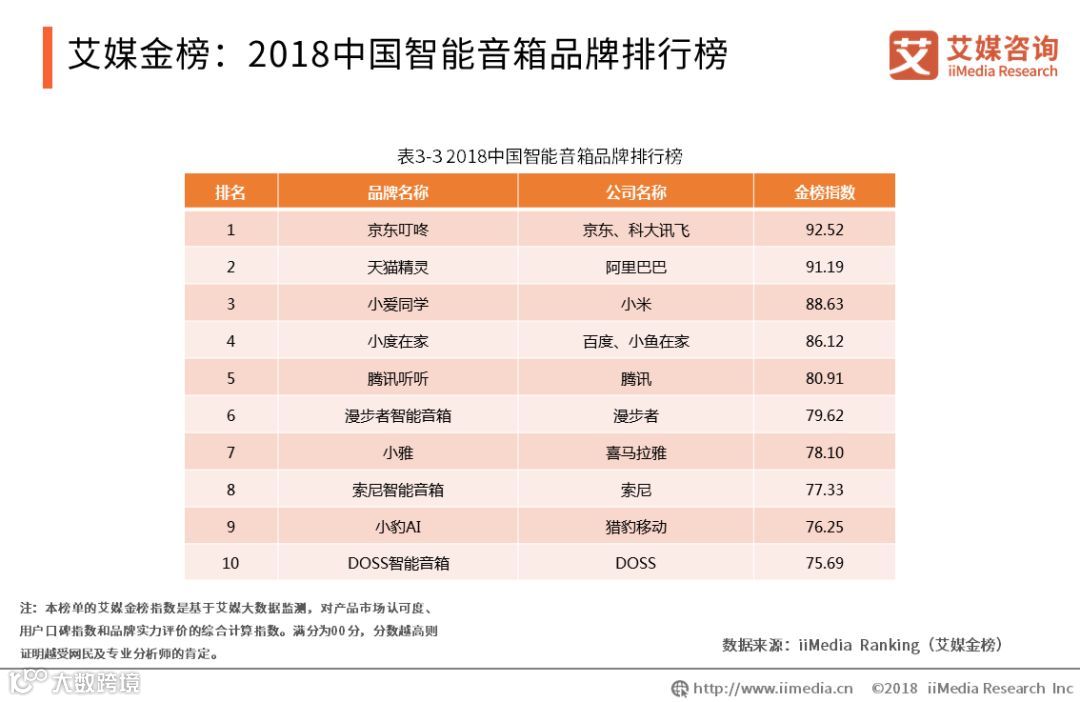 艾媒金榜:2018中国智能音箱品牌排行榜