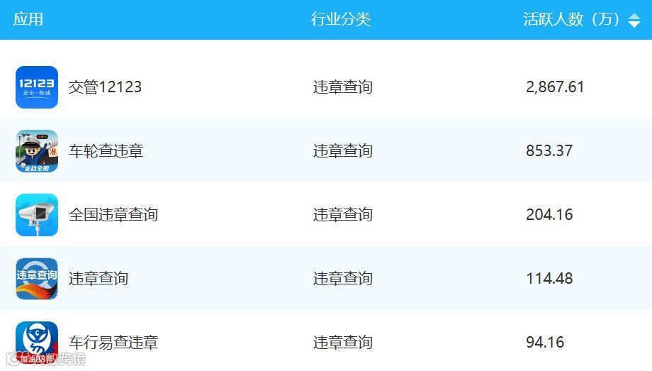 违章查询类APP11月TOP5排行榜