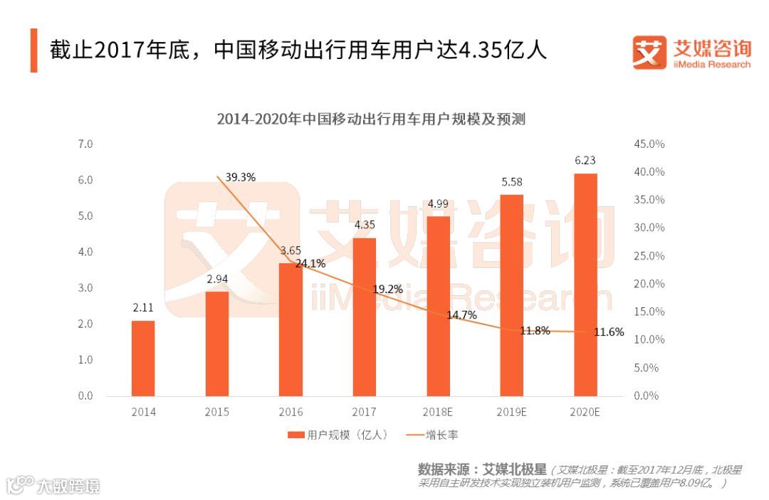 2018年4月3日,全球领先的新经济行业数据挖掘和分析机构iiMedia Research(艾媒咨询)权威发布《2017-2018中国网约车行业研究专题报告》。iiMedia Research(艾媒咨询)数据显示,截止2017年底,中国移动出行用车用户达4.4亿人。艾媒咨询分析师认为,传统出租车供应数量有限,出行市场供不应求,互联网金融技术的发展,新政承认网约车的合法身份,这些都为网约车的发展创造良好的机遇。(《2017-2018中国网约车行业研究专题报告》完整高清PDF版可点击文章底部下载按钮进行报告下载。)