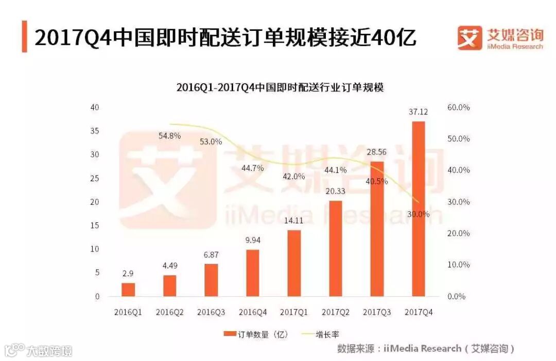 2017Q4中国即时配送订单规模接近40亿