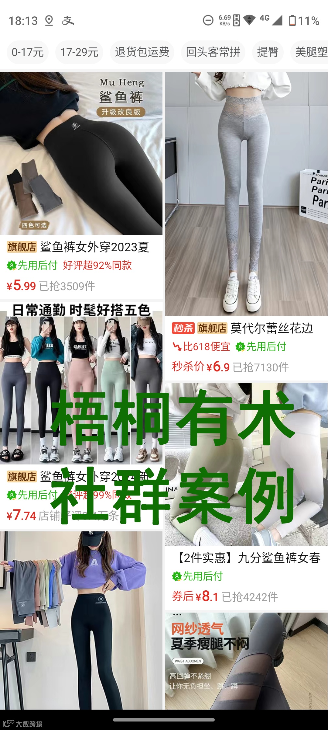 好了,接下来咱们就说产品吧,既然SW不行了,那总得有替代品吧?这个替代品就是瑜伽裤,首先,咱们先去拼多多上面看看一条瑜伽裤多少钱吧!