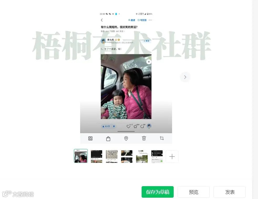 我们所需要做的并不是截长图,因为咱们是发小绿书,而不是发快手,所以截图6-10张左右,把那个高赞的问题给截完,然后就可以发布到小绿书了。如下图: