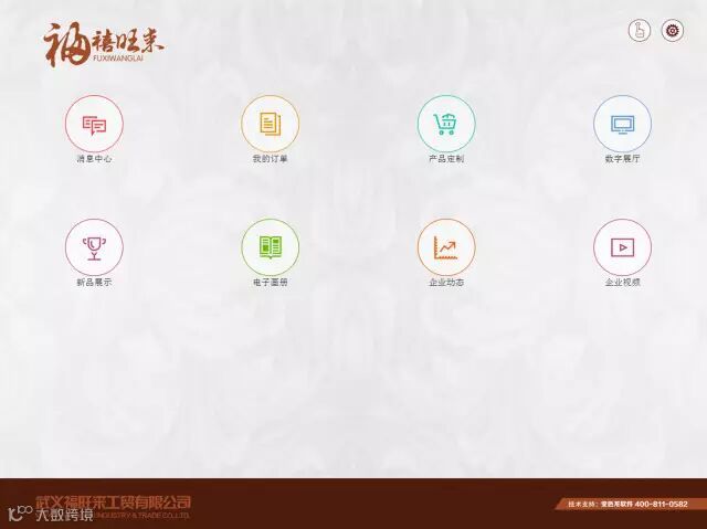 个性化菜单包含:消息中心、我的订单、产品定制、数字展厅、新品展示、电子画册、企业动态、企业视频等