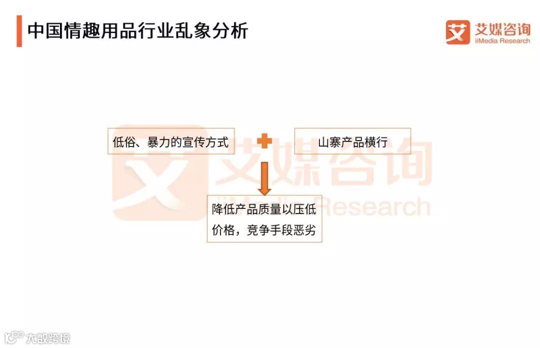 艾媒咨询分析师认为,如何对产品进行宣传和产品定价问题是情趣用品行业现阶段发展遇到的一个瓶颈,一些商家采用病态的色情露骨的宣传手段进行宣传造成了消费者对此行业的固有偏见,在购买或使用相关产品过程中萌生羞耻感;而不法商贩压售卖次品,压低价格谋取暴利也使得用户对产品质量失去信心,产生价格不合理认知,严重影响行业发展及正规商家获利。因此,行业规范亟待制定,也亟需一个企业在宣传方面进行行业领跑,以正行业口碑。