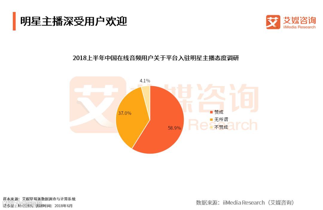 iiMedia Research(艾媒咨询)数据显示,超过一半的受访用户赞成明星入驻在线音频平台。艾媒咨询分析师认为,在线音频平台的受众用户大多为年轻用户,而年轻用户对明星的认可度较高,引入当红明星进驻平台不仅可以为平台吸引更多流量,还能有效增强用户活跃度及粘性。