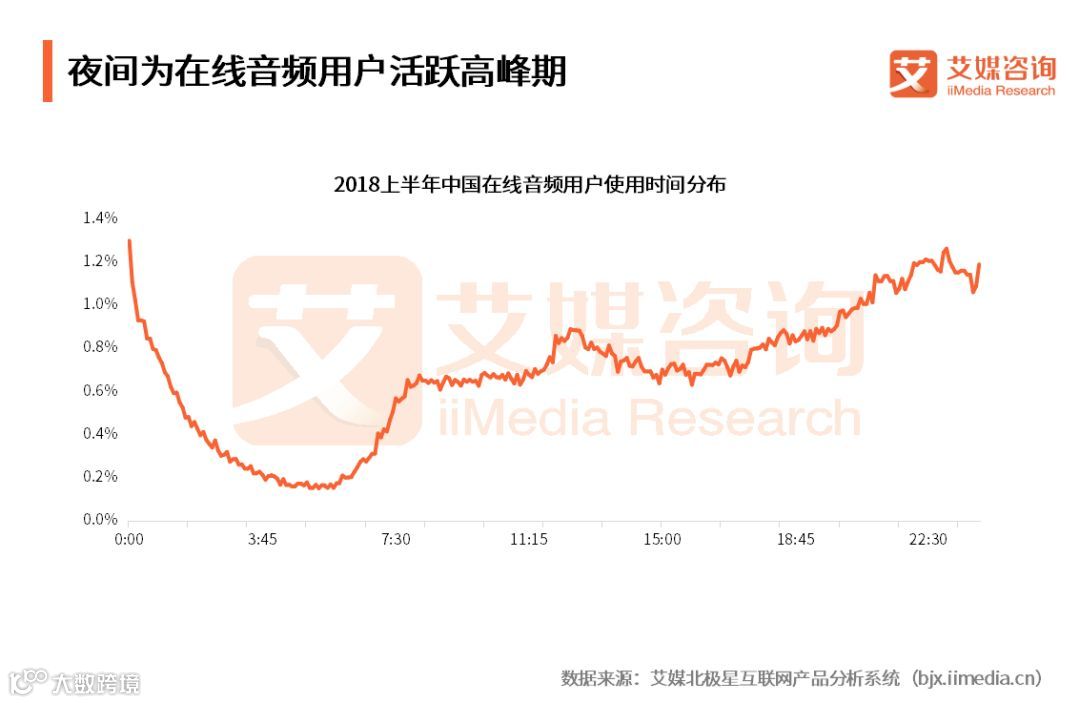 夜间为在线音频用户活跃高峰期