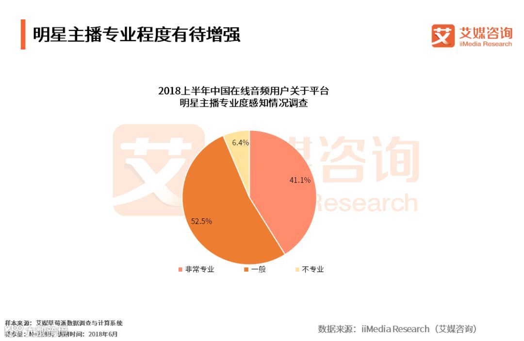 iiMedia Research(艾媒咨询)数据显示,超过一半的受访在线音频用户认为明星作为主播的专业程度一般,艾媒咨询分析师认为,在线音频平台虽然能够利用明星主播引流,但长期来看,仍然需要提升明星主播专业程度以增强用户粘性。